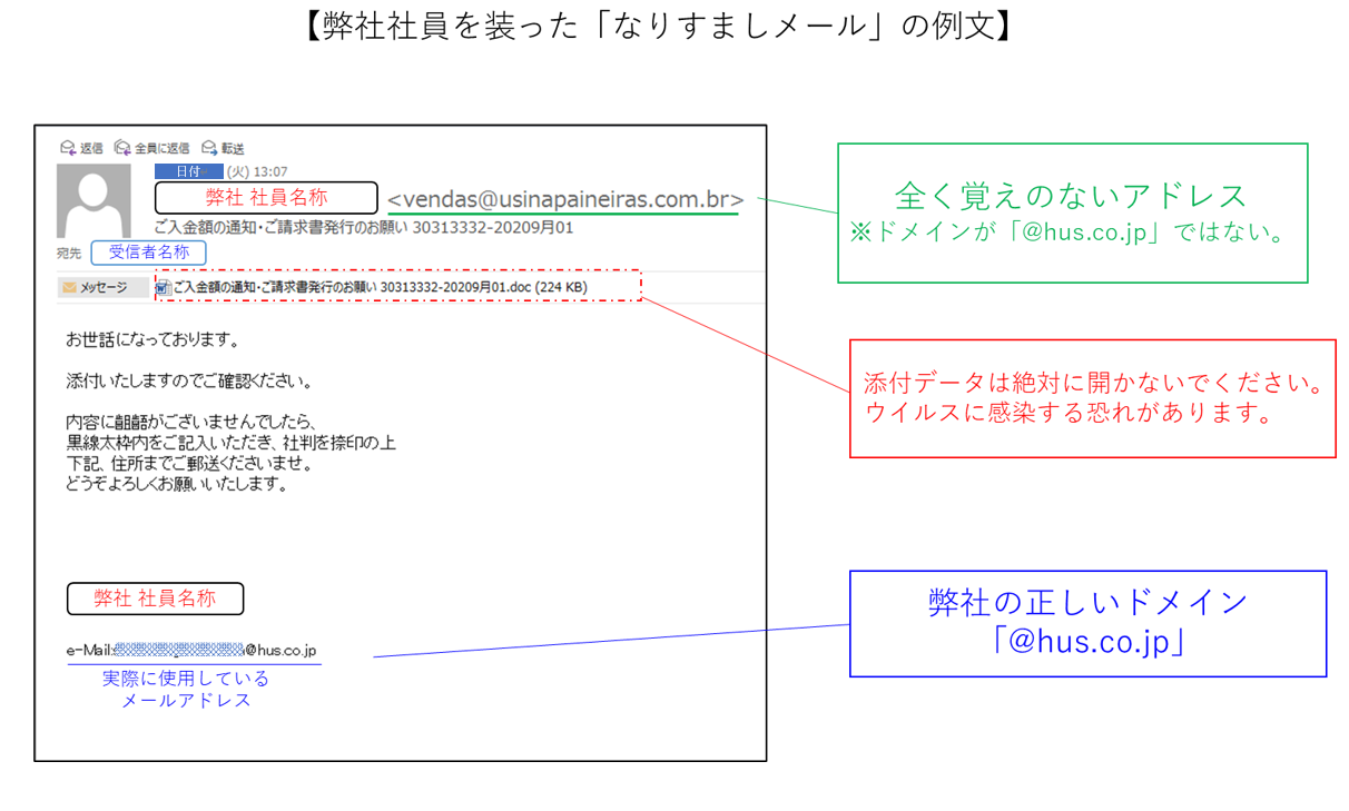 【重要】弊社社員を装った迷惑メール(なりすましメール)に関するお詫びと注意喚起について