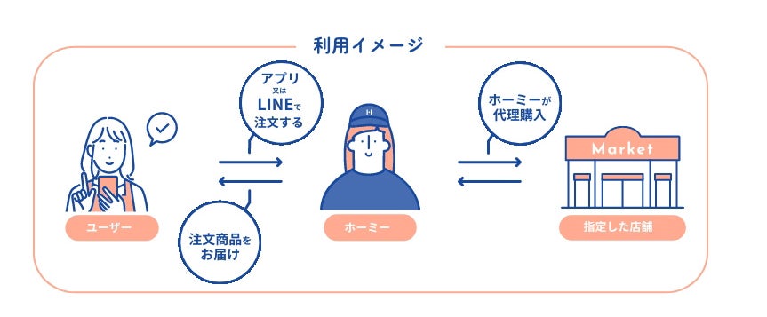 このサービスでは、お客様が欲しい商品や食材をアプリやLINEから注文し、専門のスタッフが代わりに商品を購入し、お客様の元へ即日配送します。